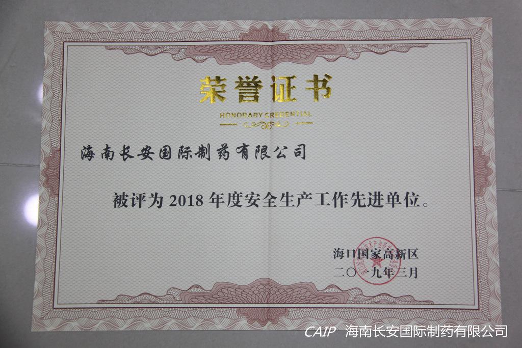 3月21日上午,在海口國(guó)家高新區(qū)2019年第一次安全生產(chǎn)工作會(huì)議暨2018年度安全生產(chǎn)工作表彰大會(huì)上,海南長(zhǎng)安國(guó)際制藥有限公司榮獲“2018年度安全生產(chǎn)工作先進(jìn)單位”的表彰。