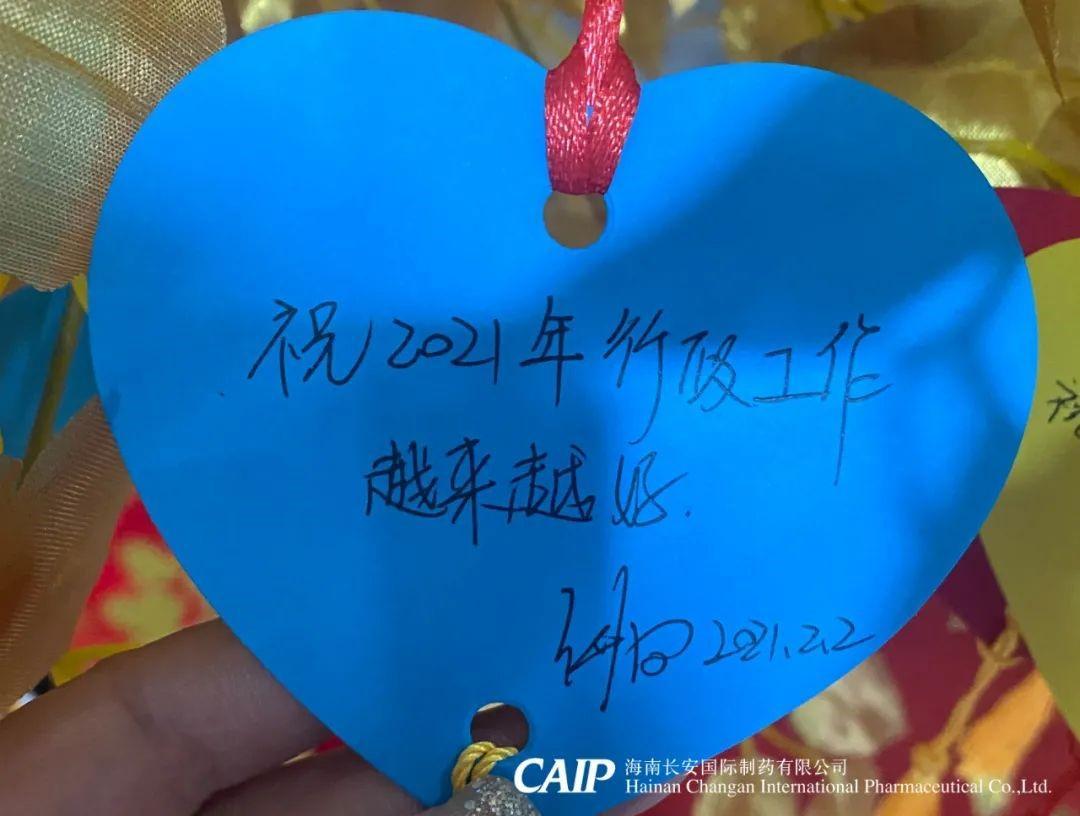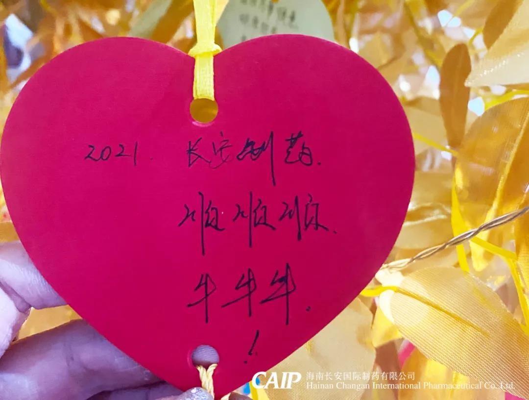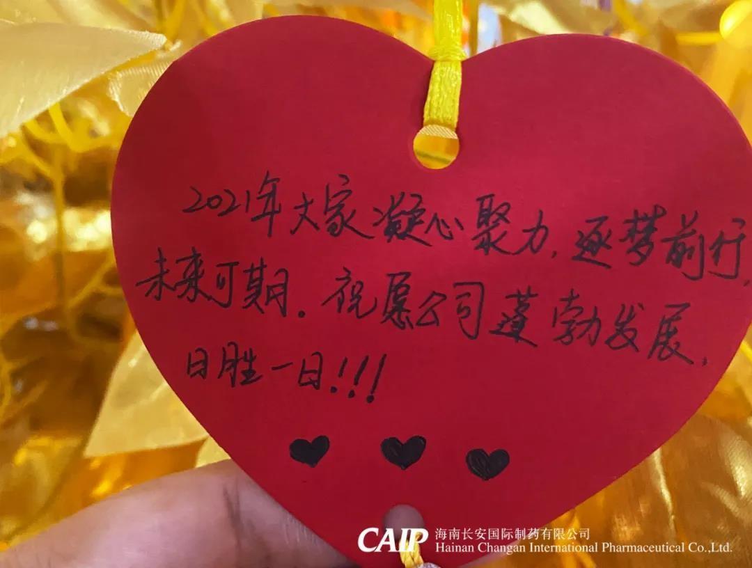 許下心愿的同事們臉上洋溢著快樂(lè)的微笑,一張張的心型的祝福卡片被掛在金色的許愿樹(shù)上,這些祝福中蘊(yùn)含著長(zhǎng)安人對(duì)辭別舊歲喜迎新年的美好愿景和內(nèi)心最深處的愛(ài)意,同時(shí)也包括了同事們對(duì)長(zhǎng)安制藥的真切祝福,對(duì)同事的美好祝愿,對(duì)個(gè)人未來(lái)的美好憧憬。