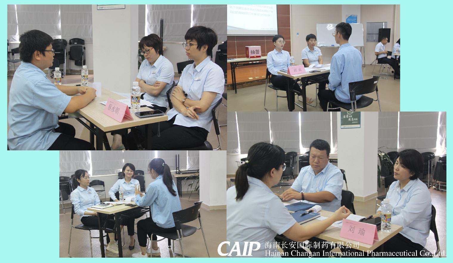 現(xiàn)場評估答辯分為三個環(huán)節(jié):自我介紹、現(xiàn)場必答題、抽簽答題。面試主考官由長安制藥中高層領(lǐng)導(dǎo)組成,每位新晉管理人員的面試主考官和第三個環(huán)節(jié)的答題都是由抽簽來決定,體現(xiàn)了公平公正公開的原則。
